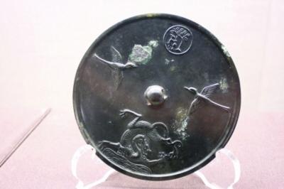 其中唐代双鸾衔绶带纹镜尤为精美,此镜主题纹饰是二禽鸟,镜背有双鸾,各口衔飘动的五彩绶带翩翩起舞。这种铜镜可能与唐玄宗每年“千秋节”都铸镜赏赐宗室臣下有关,玄宗曾为这种铜镜赋诗“更衔长绶带,含意感人深”。